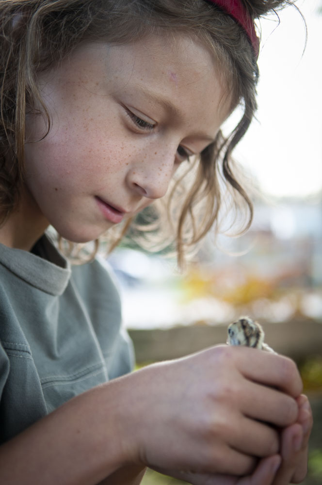 Finn at the Oshawa Zoo, with quail chick