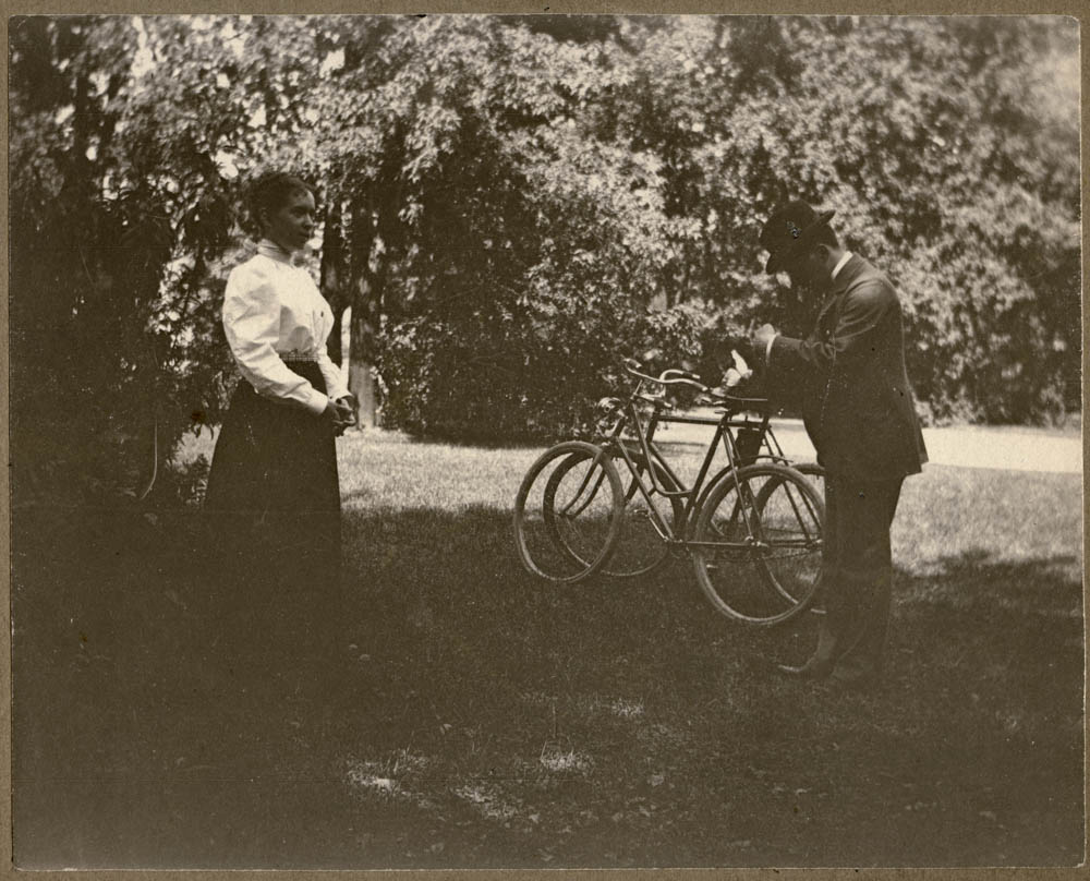 Margarita Hande Midelfart with Hans Christian Ulrik Midelfart photographing her. – ca 1900