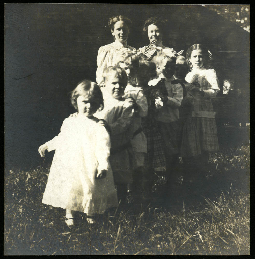 “Thorpes and Midelforts” Margarita at rear left. Anna Louise Midelfort at far right, as oldest. – 1909