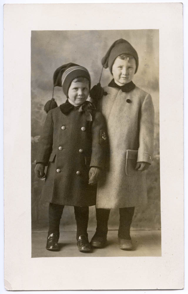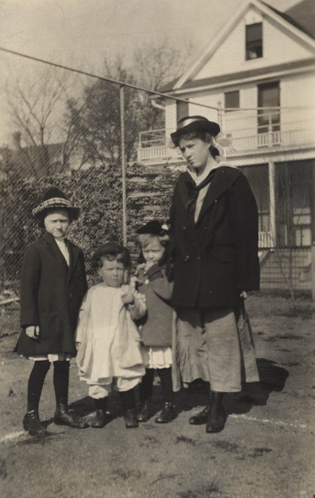 Anna Louise Midelfart at right. Most likely Ingeborg (Ingie) at left. Two other siblings in the middle, most likely. – Circa 1912