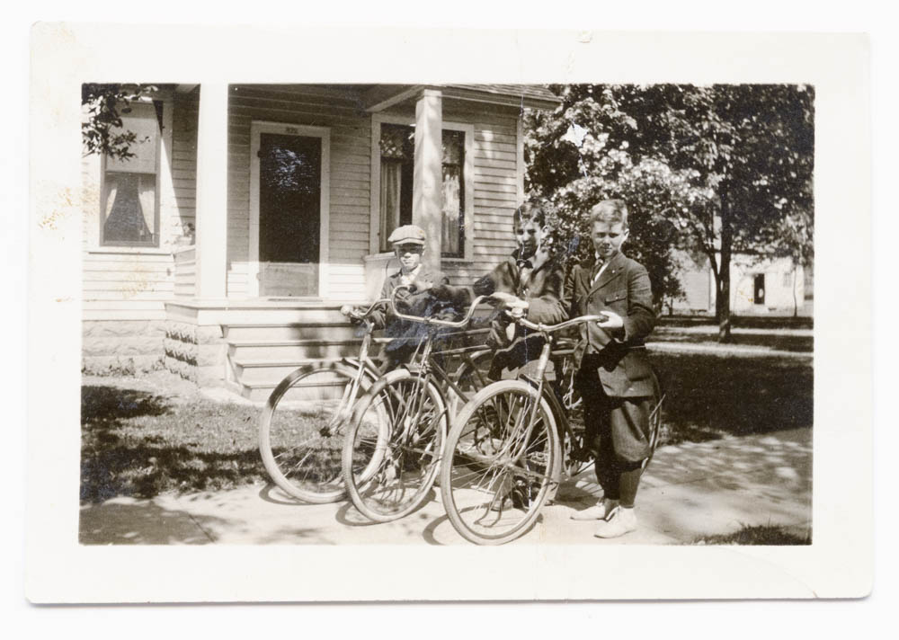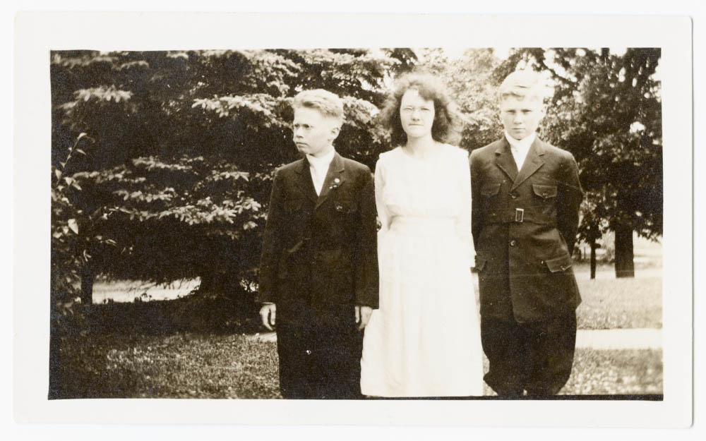 Fredrik (Fritz) at left, unknown person at middle and Peter Midelfort on right.