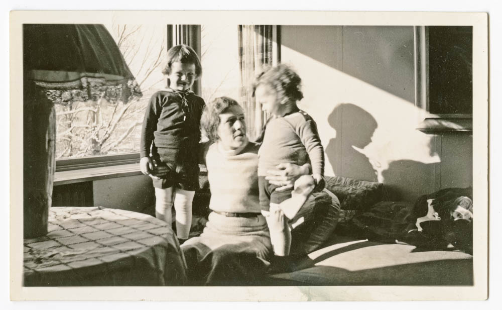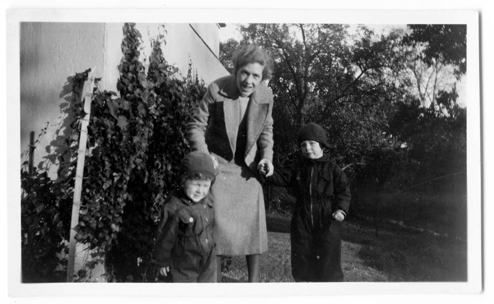 “This isn’t good, but am sending everything” Anna Louise with A. Kåre and Ulrik in the garden at Karlsrostredet 8 Larvik Norway Fall, 1935