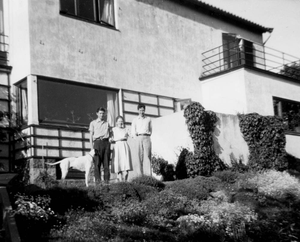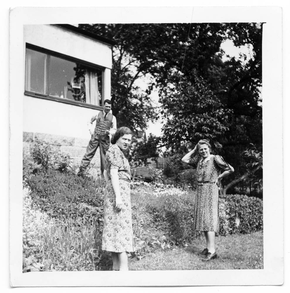 Ulrik, Anna Louise and A. Kåre Hellum in the garden at Karlsrostredet 8, Larvik Norway