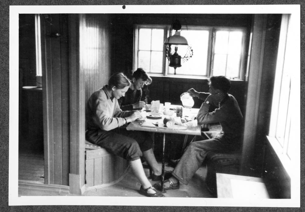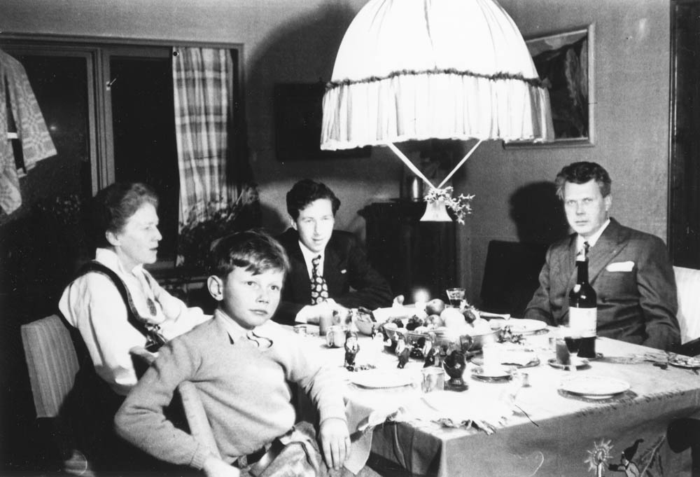 L-R: Louise, Halvard, Kåre, August Hellum at the dinner table at Karlsrostredet 8, Larvik, Norway.