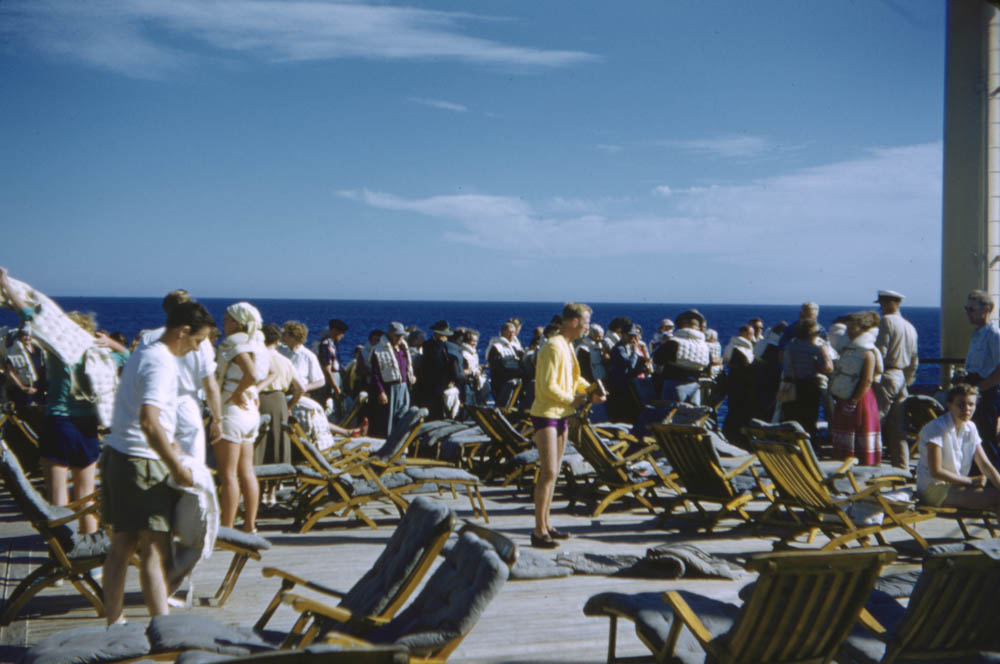 Onboard the ‘Oslofjord’ on B Deck, after life preserver tryout.