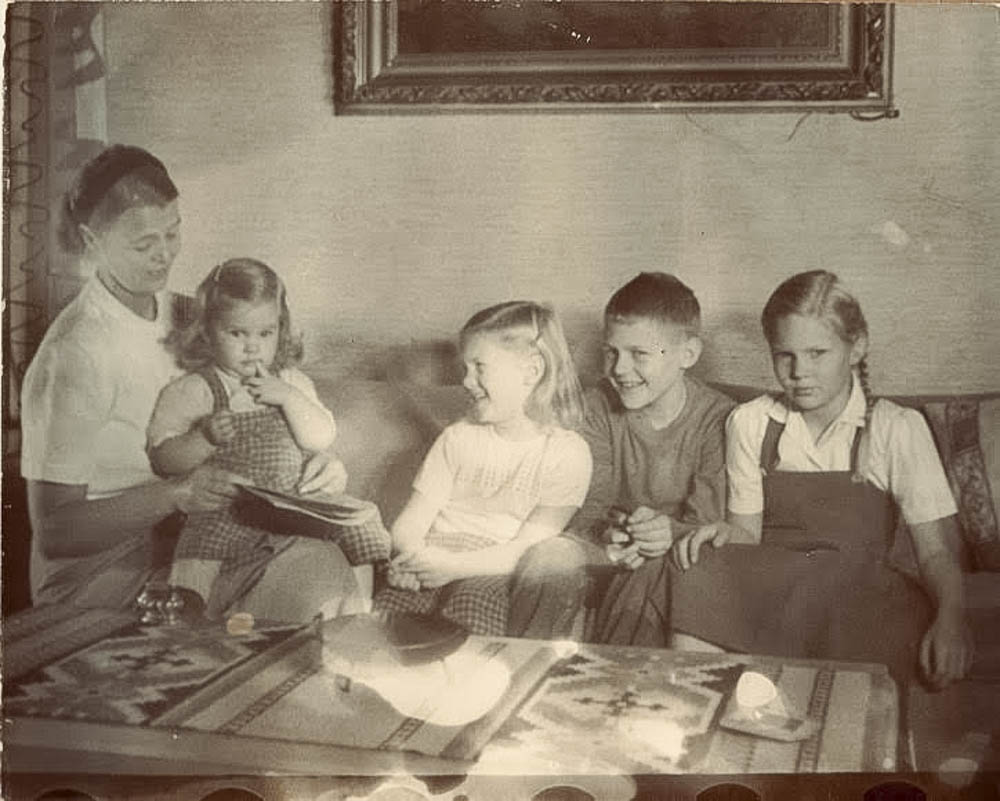 L-R: Gerd Midlefort (née Gjems), Kristin, Elise, Erik and Signe. 1953