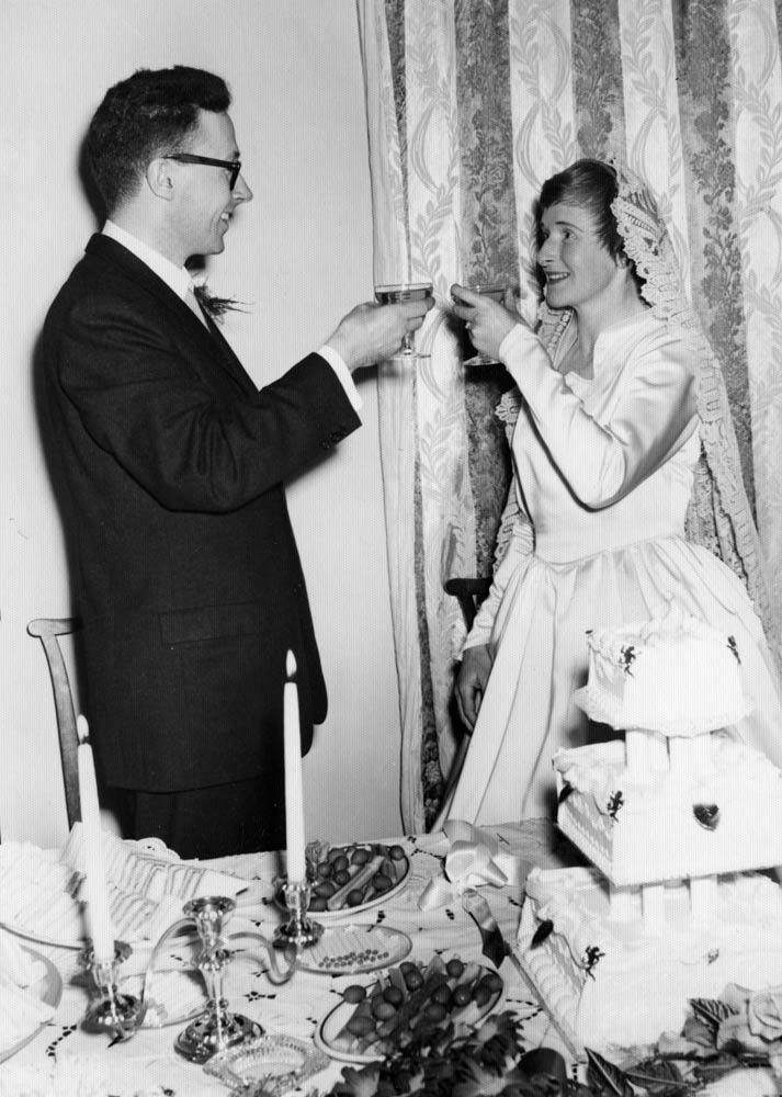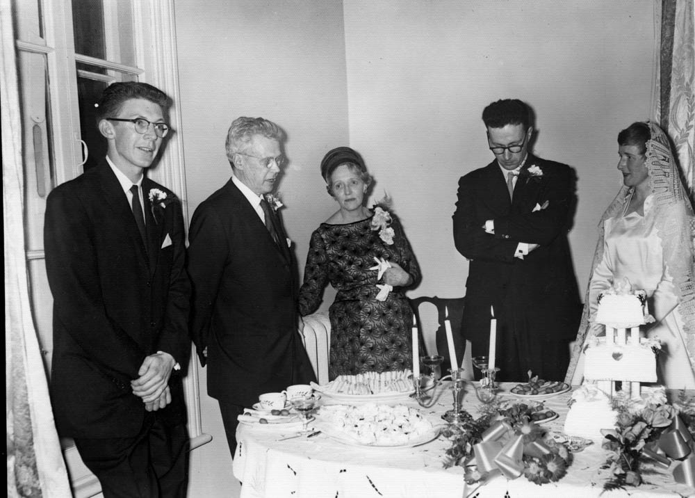 Marriage of Andreas Kåre Hellum and Hilary Spriggs. Reception afterwards December 20, 1960