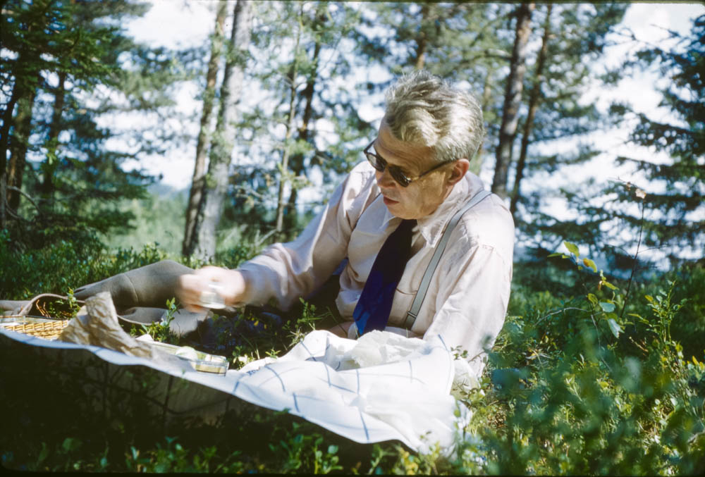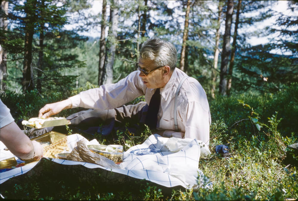 “After mother died we took a trip into the mountains (near Hönefoss).” June, 1960 L-R: Margaret (Maggie) Midelfort, August and A. Kåre Hellum.