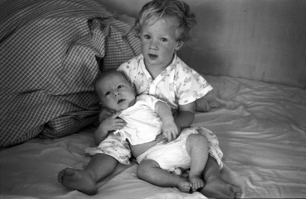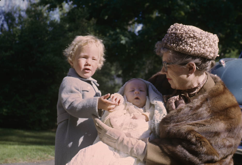 August Hellum stands with Hilary Hellum (née Spriggs). Jennifer Elisabeth Hellum in lower right.