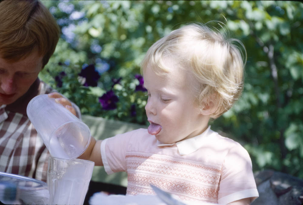 Betty Spriggs (née Lickfold) washing Timothy Hellum in a bread bowl at Ann Arbor, Michigan.