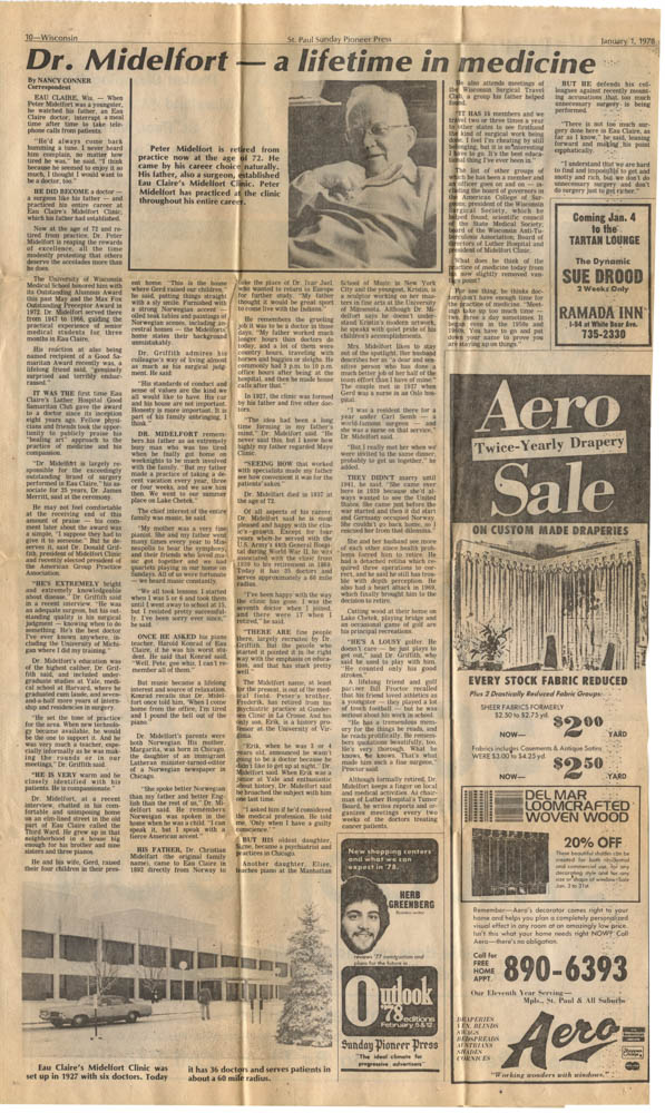 Story about the death of Peter Midelfort in the Eau Claire Leader-Telegram April 17, 1978